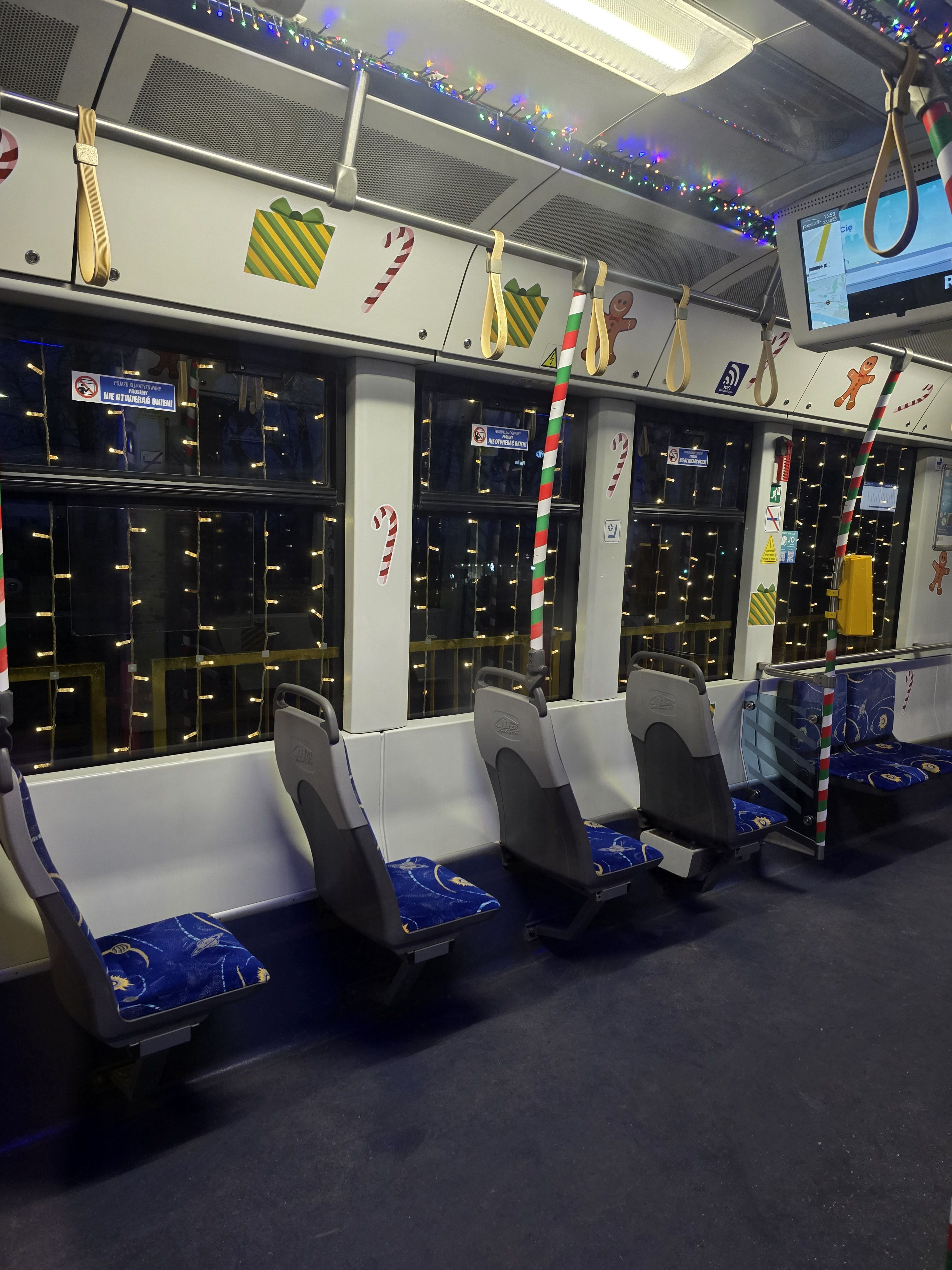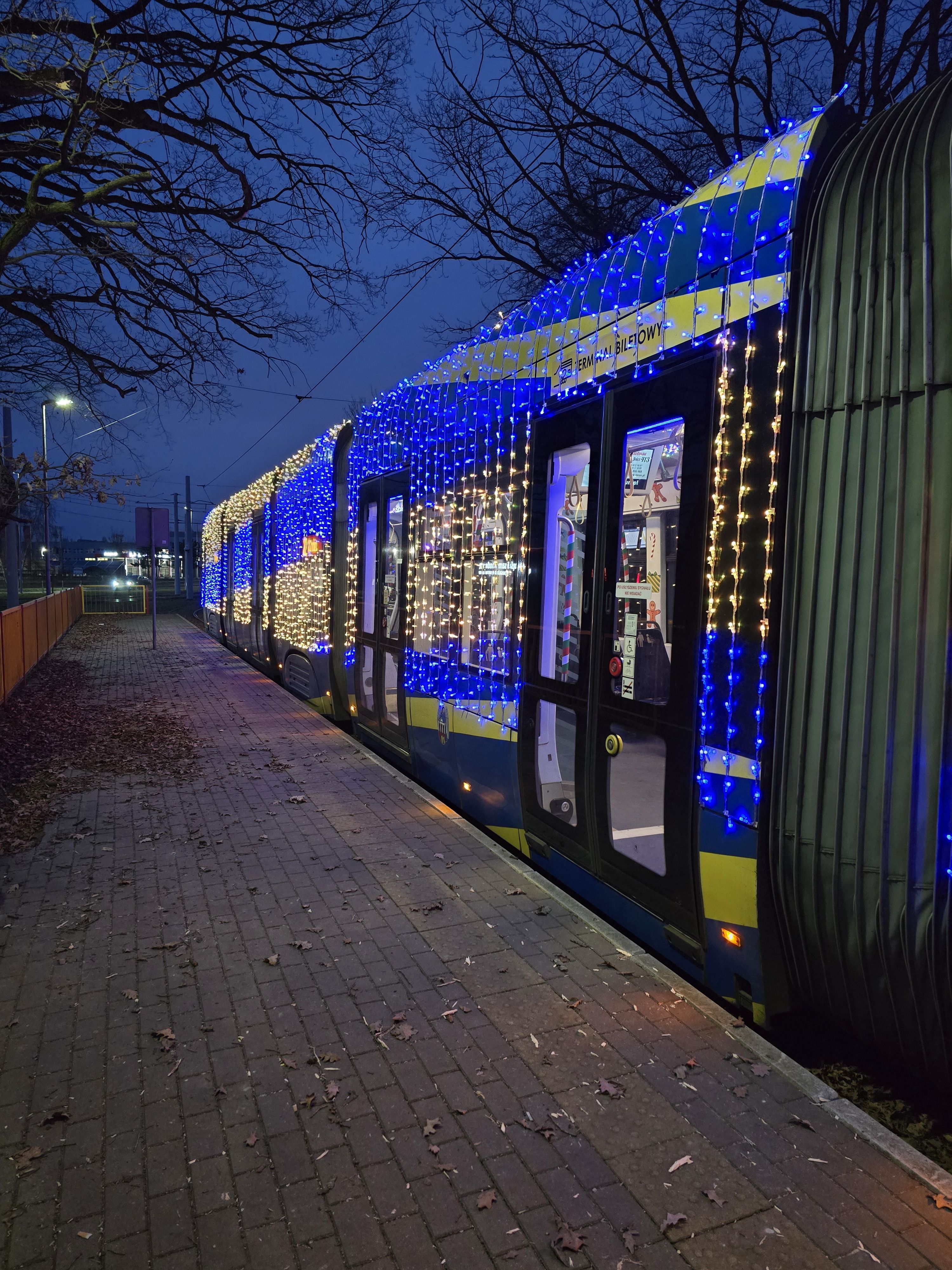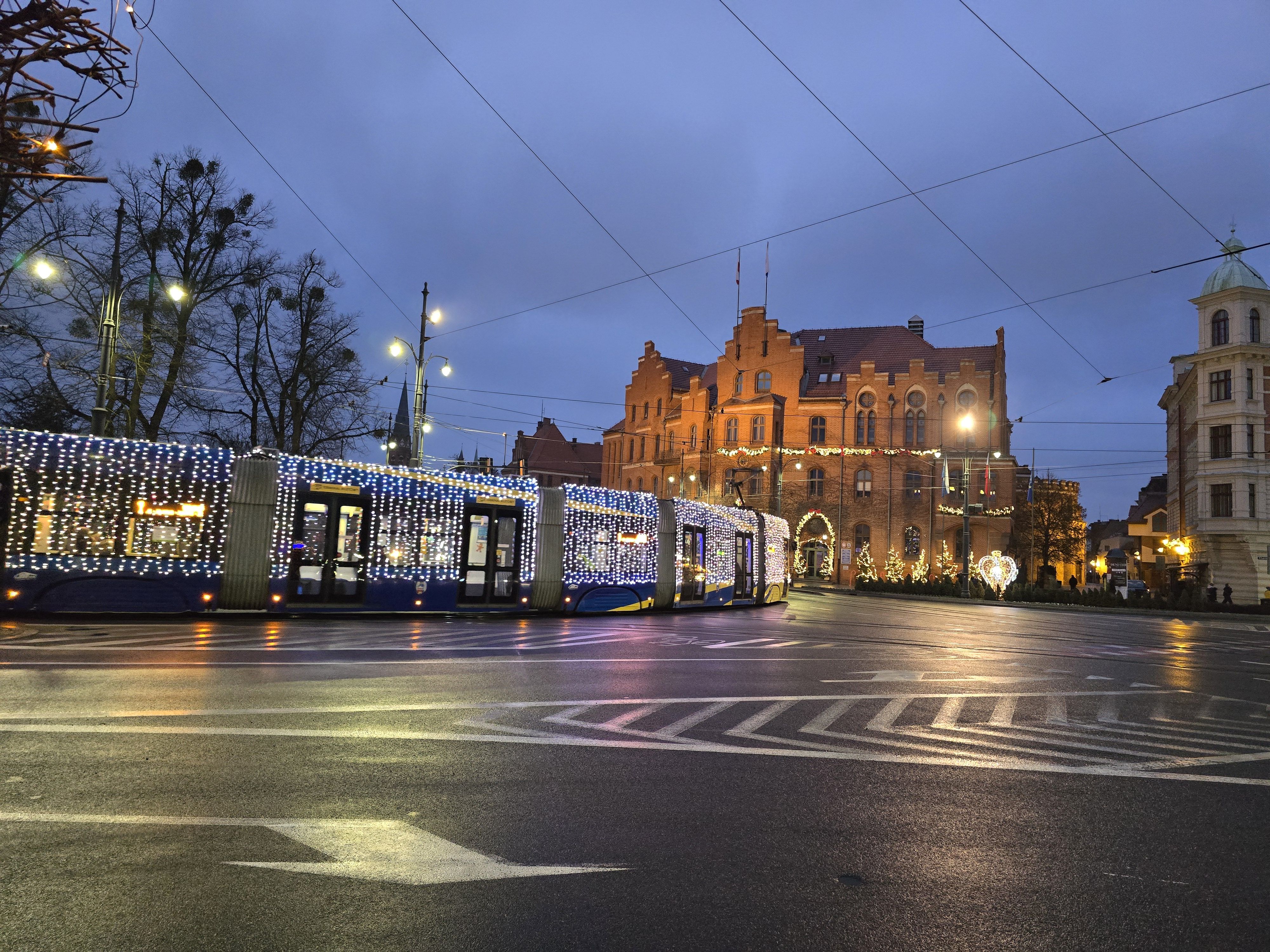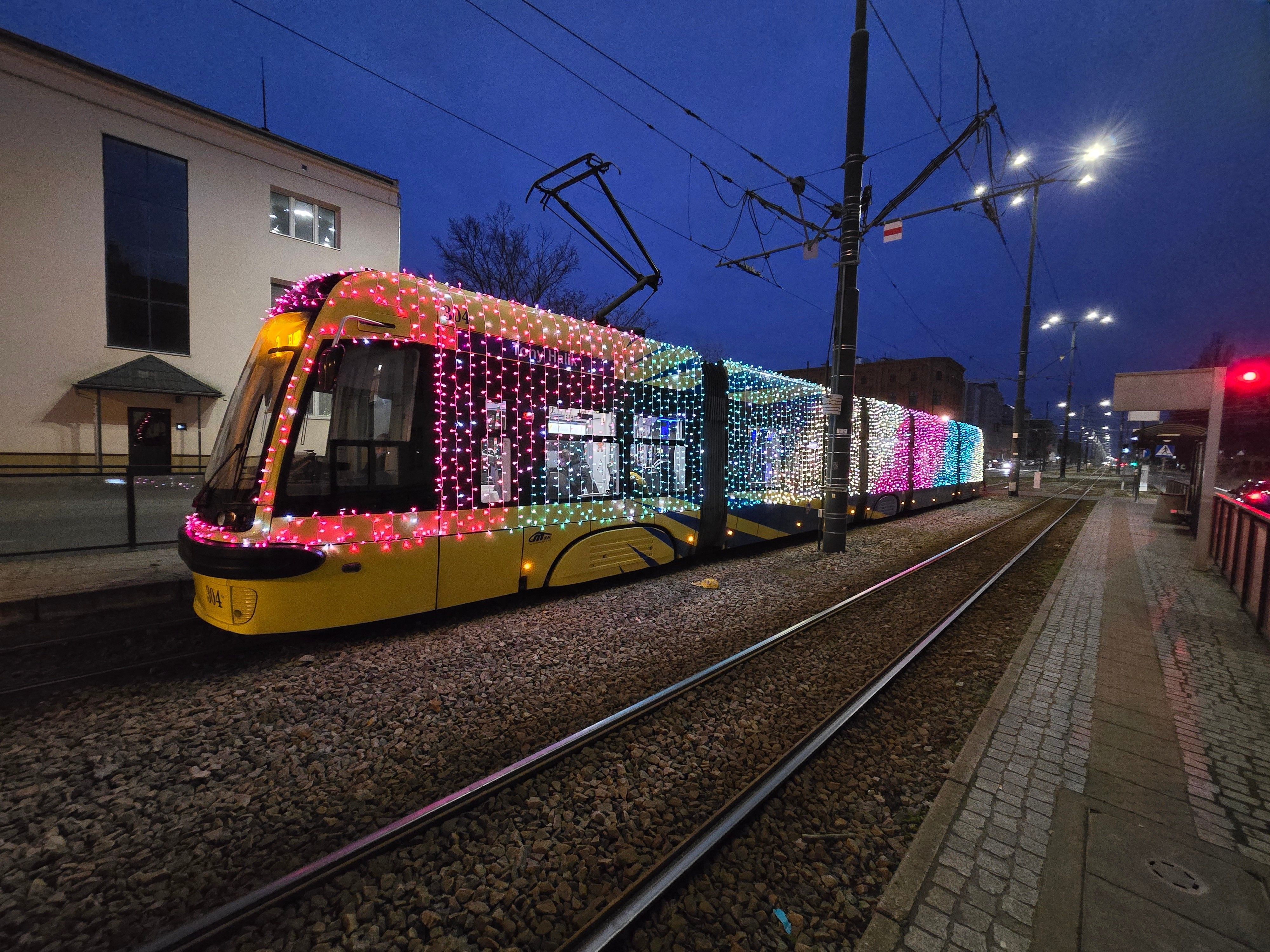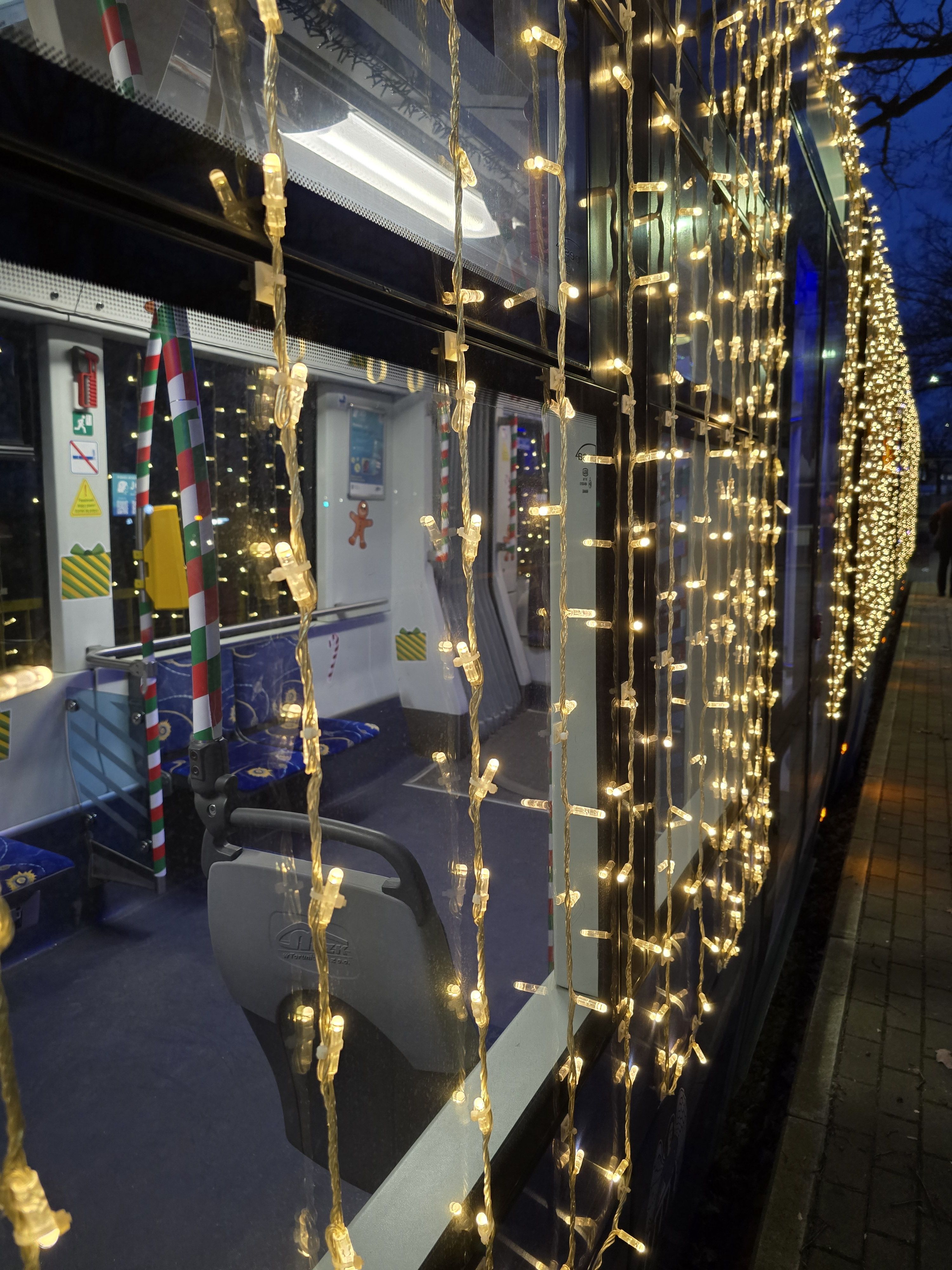 Toruński Tramwaj Świąteczny w pełnej krasie – światła, dekoracje i świąteczna atmosfera uchwycone na zdjęciach! Tramwaj jeździ po ulicach Torunia od 5 grudnia 2025 r. do 6 stycznia 2026 r. Jeśli jeszcze ktoś nie miał okazji wsiąść – zapraszamy serdecznie, zostało już tylko kilka dni!