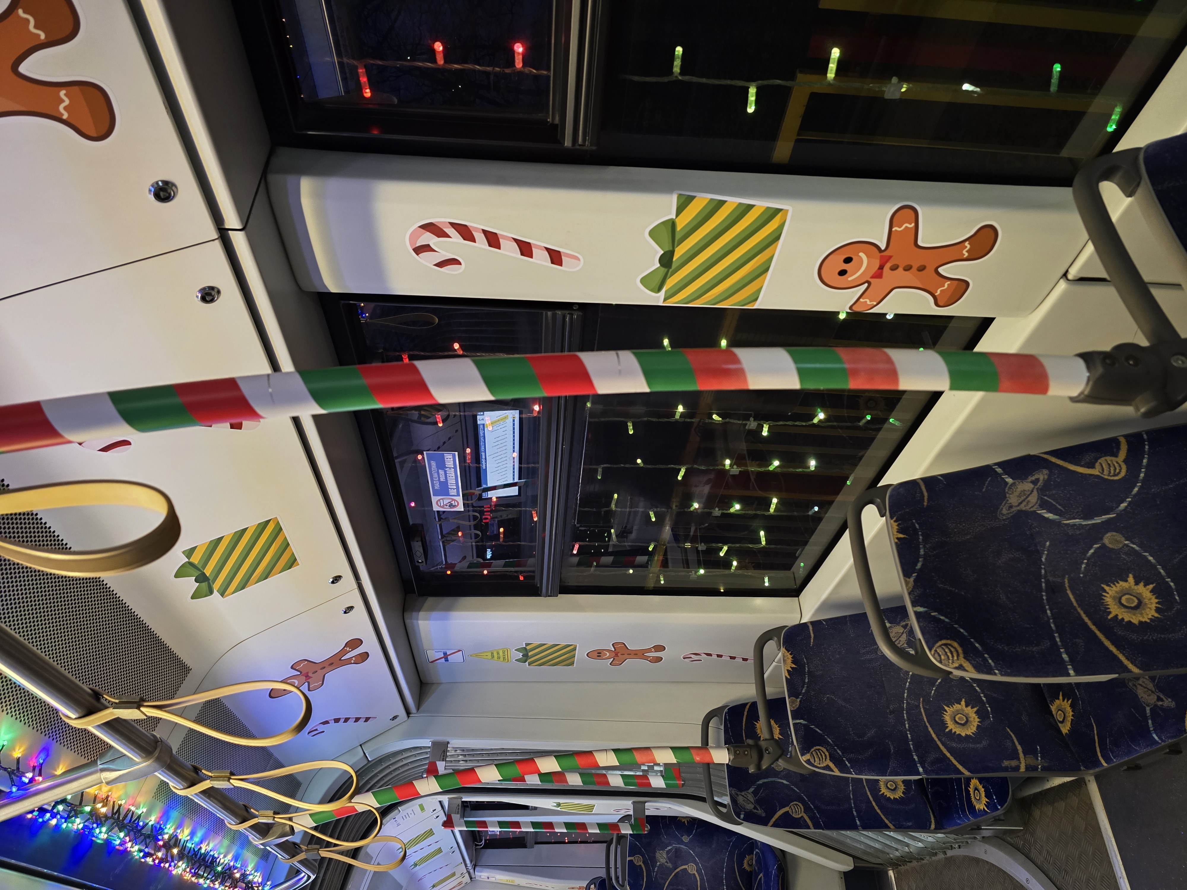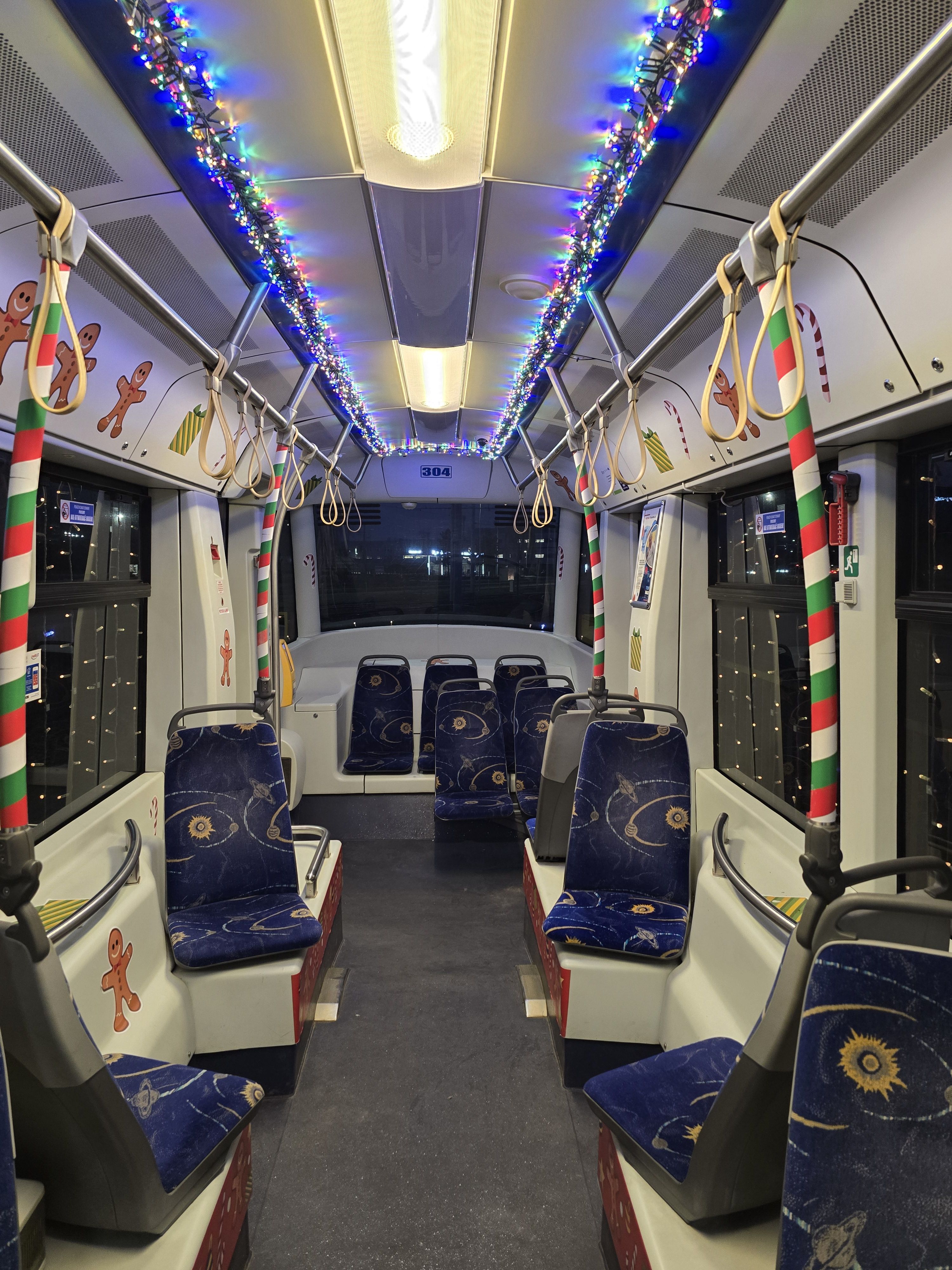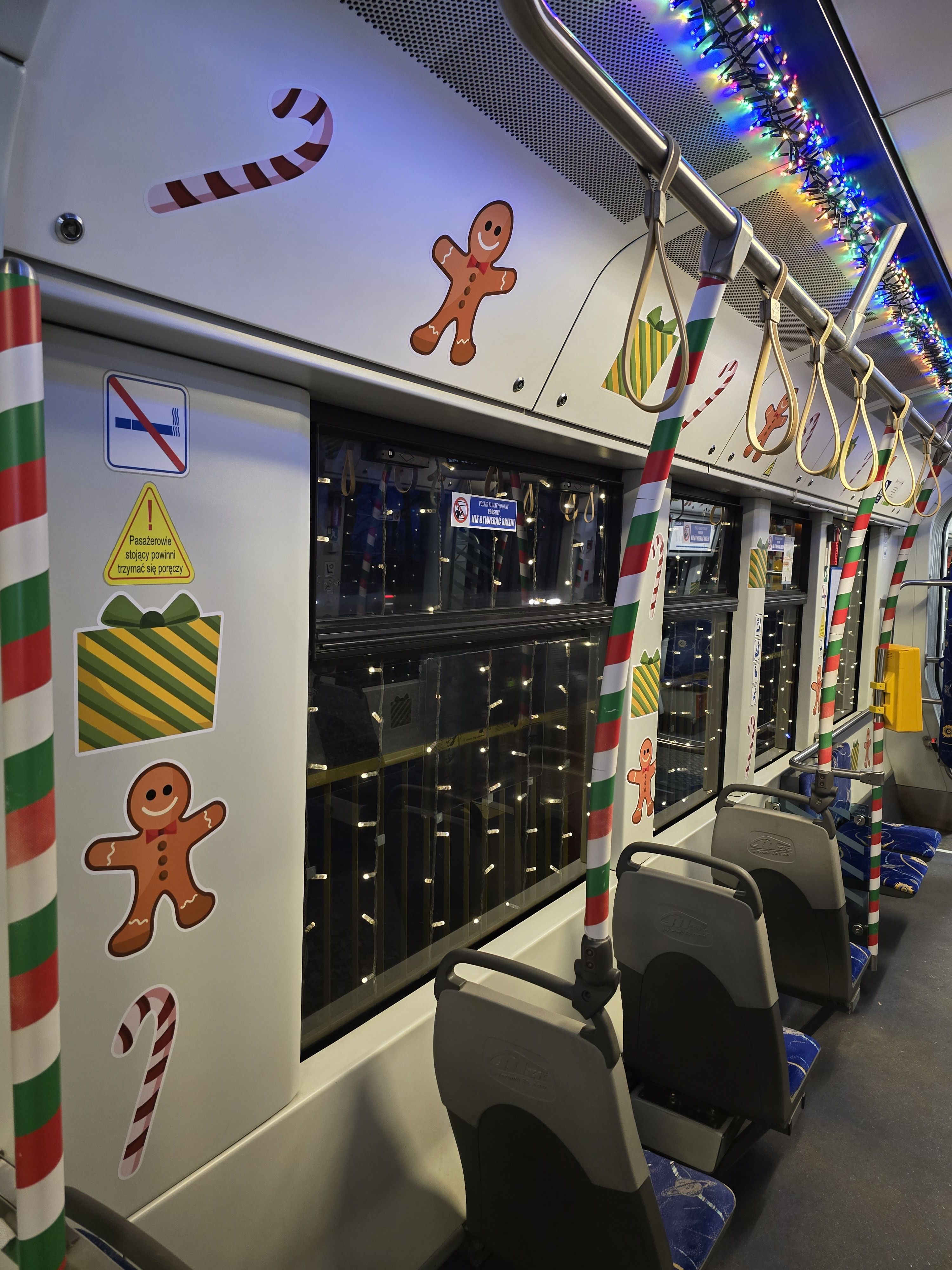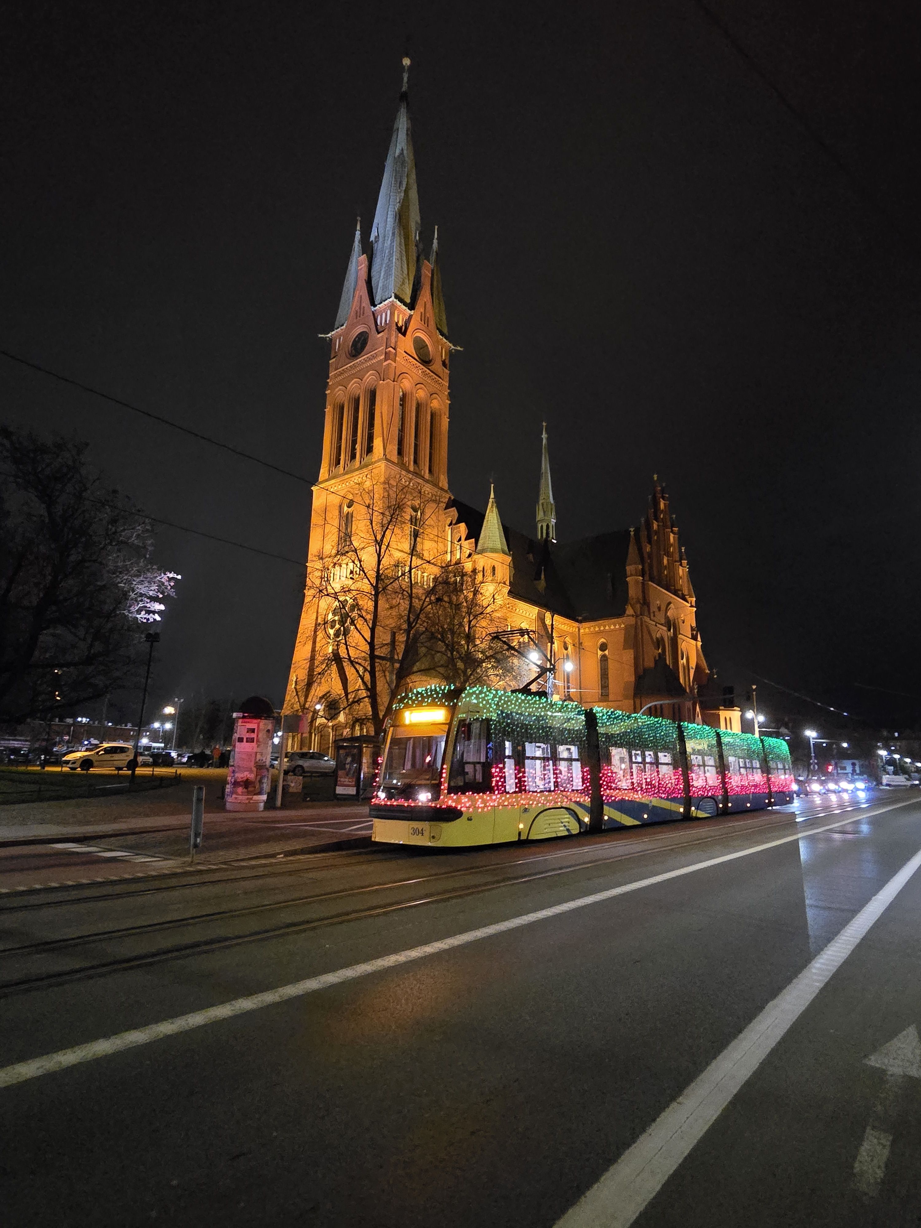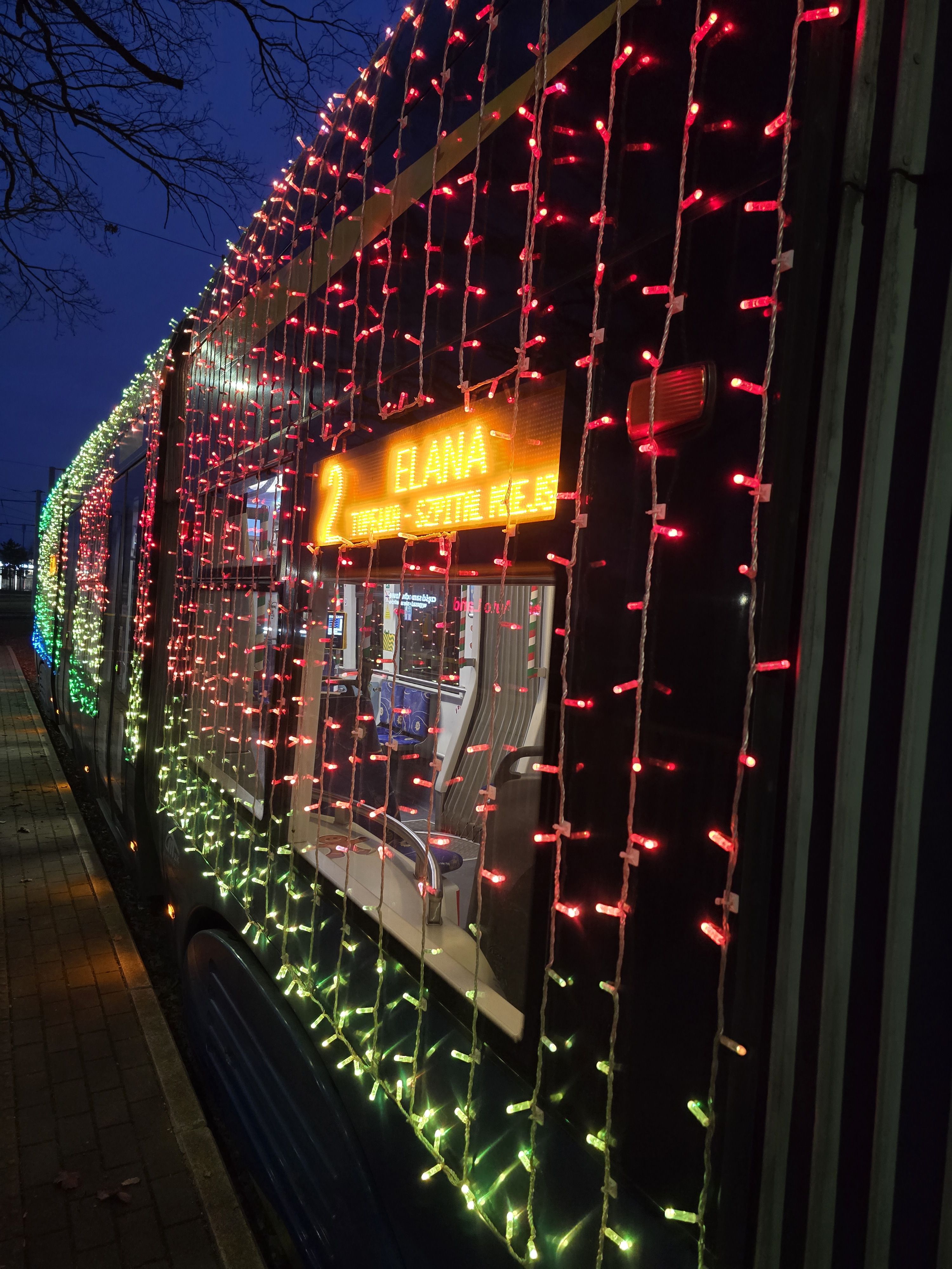 Toruński Tramwaj Świąteczny w pełnej krasie – światła, dekoracje i świąteczna atmosfera uchwycone na zdjęciach! Tramwaj jeździ po ulicach Torunia od 5 grudnia 2025 r. do 6 stycznia 2026 r. Jeśli jeszcze ktoś nie miał okazji wsiąść – zapraszamy serdecznie, zostało już tylko kilka dni!