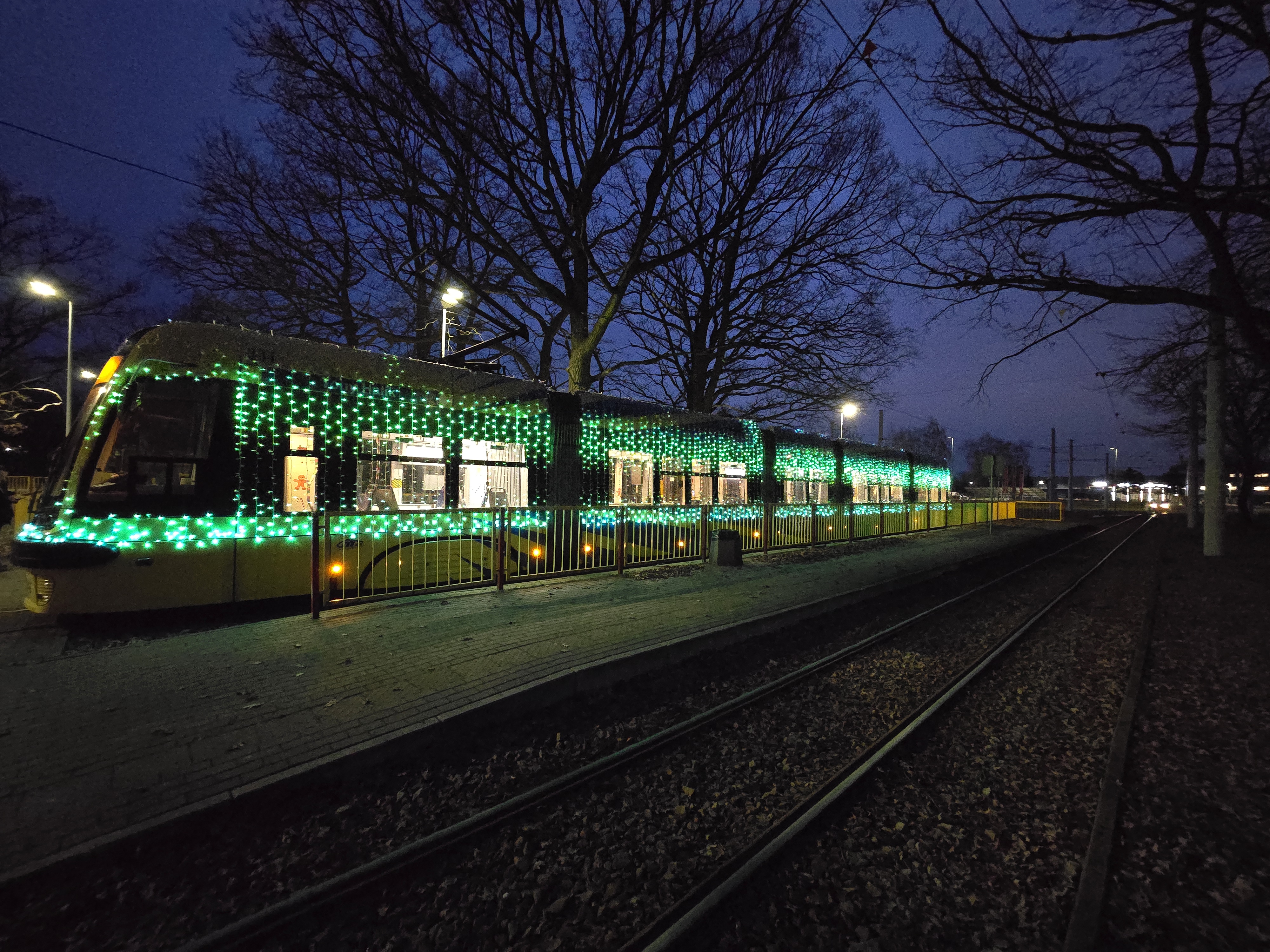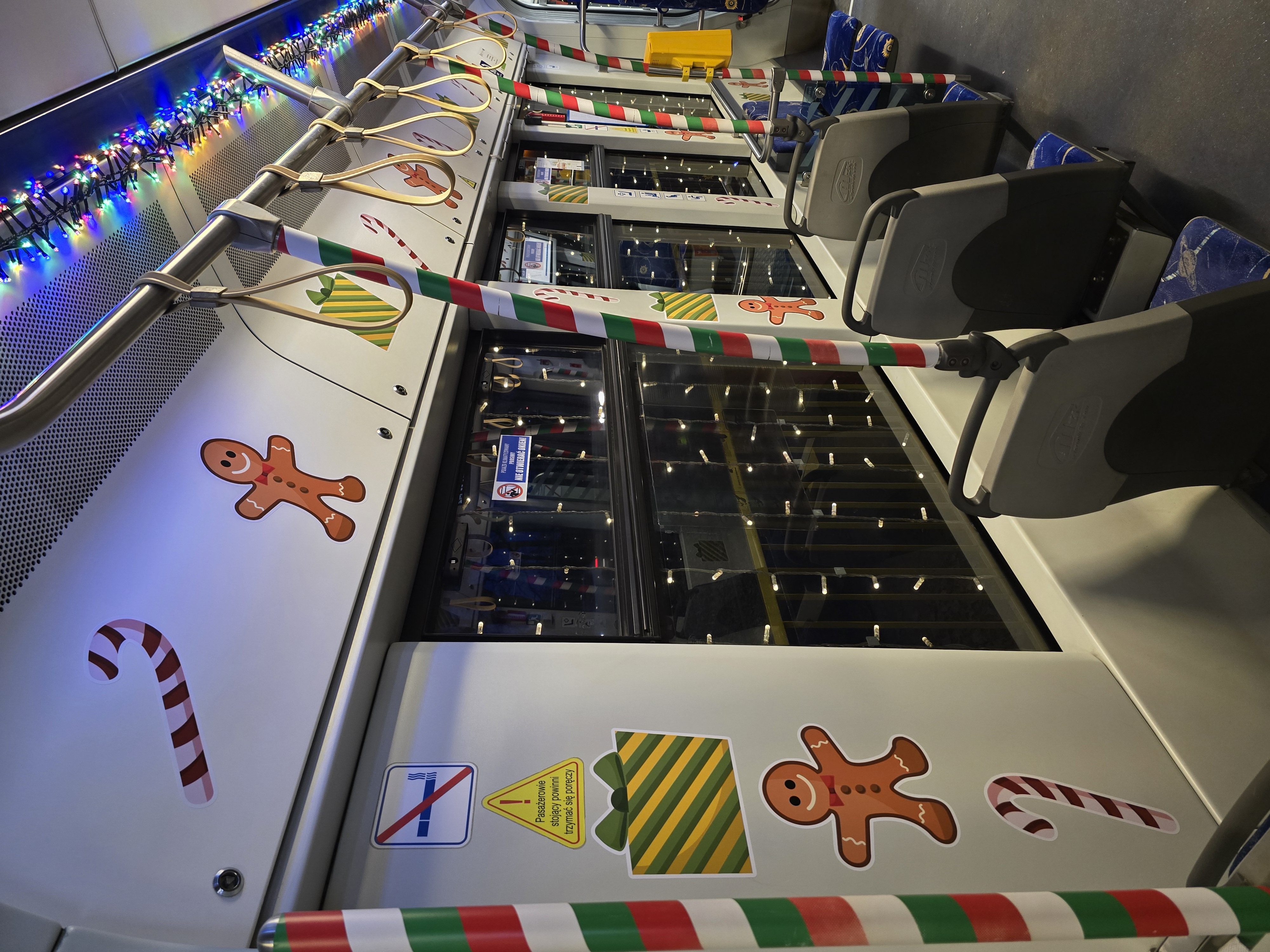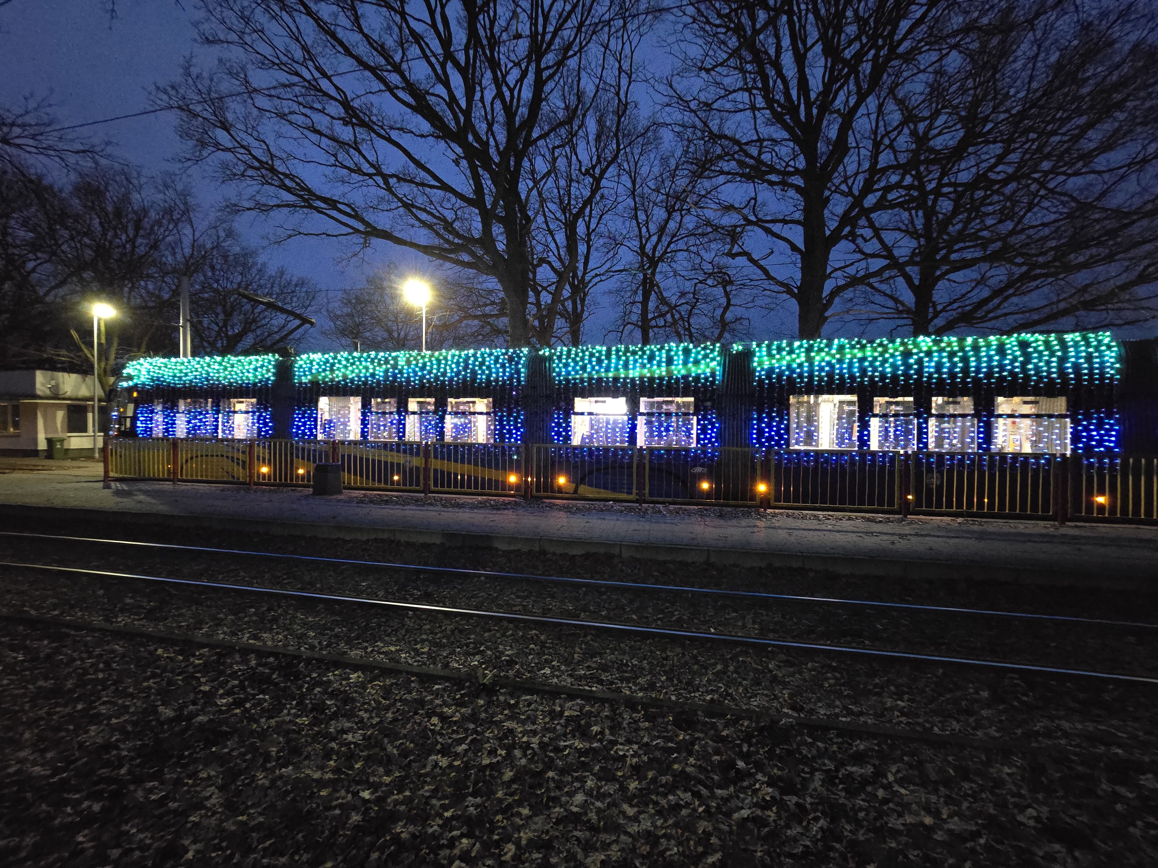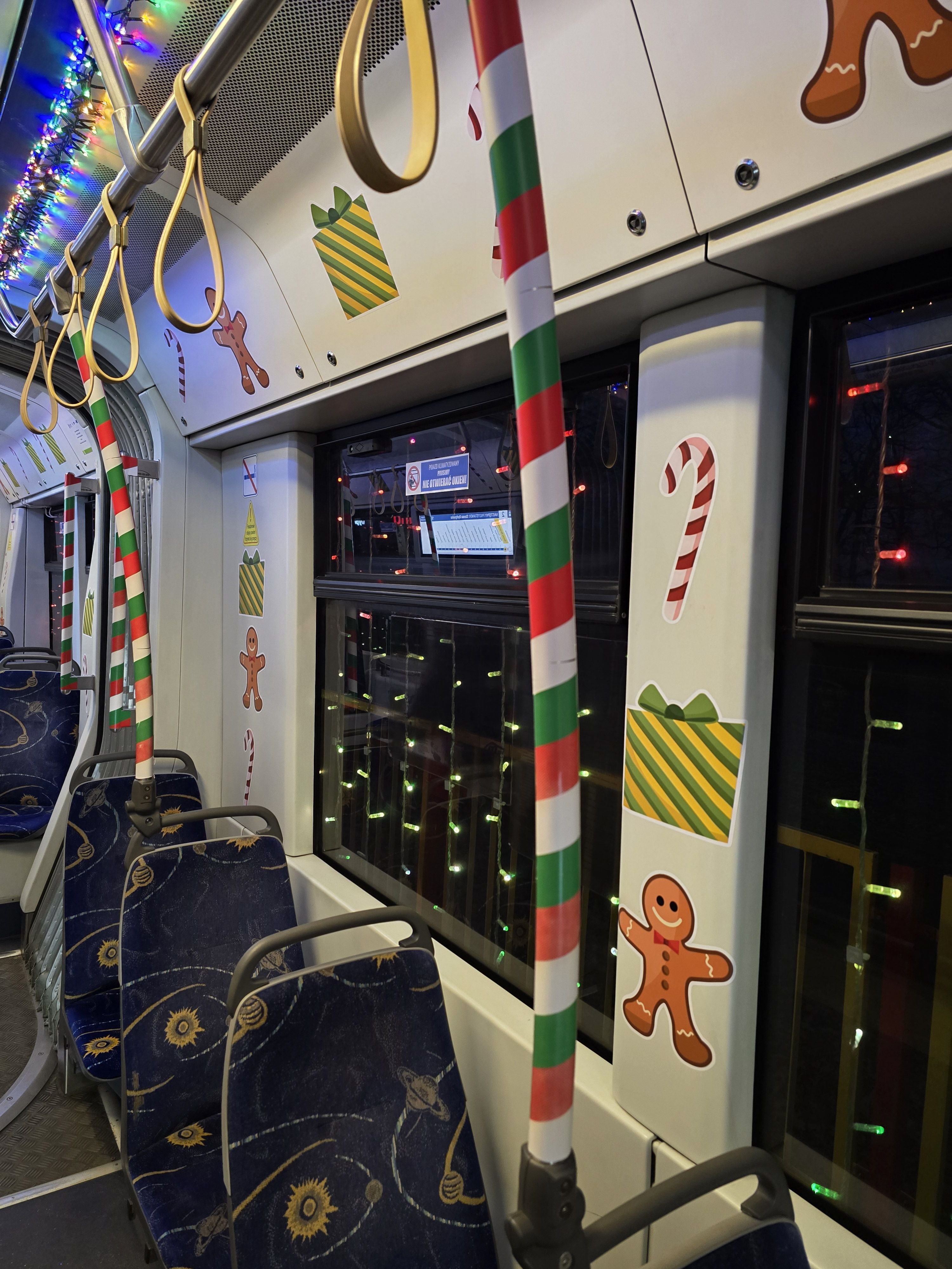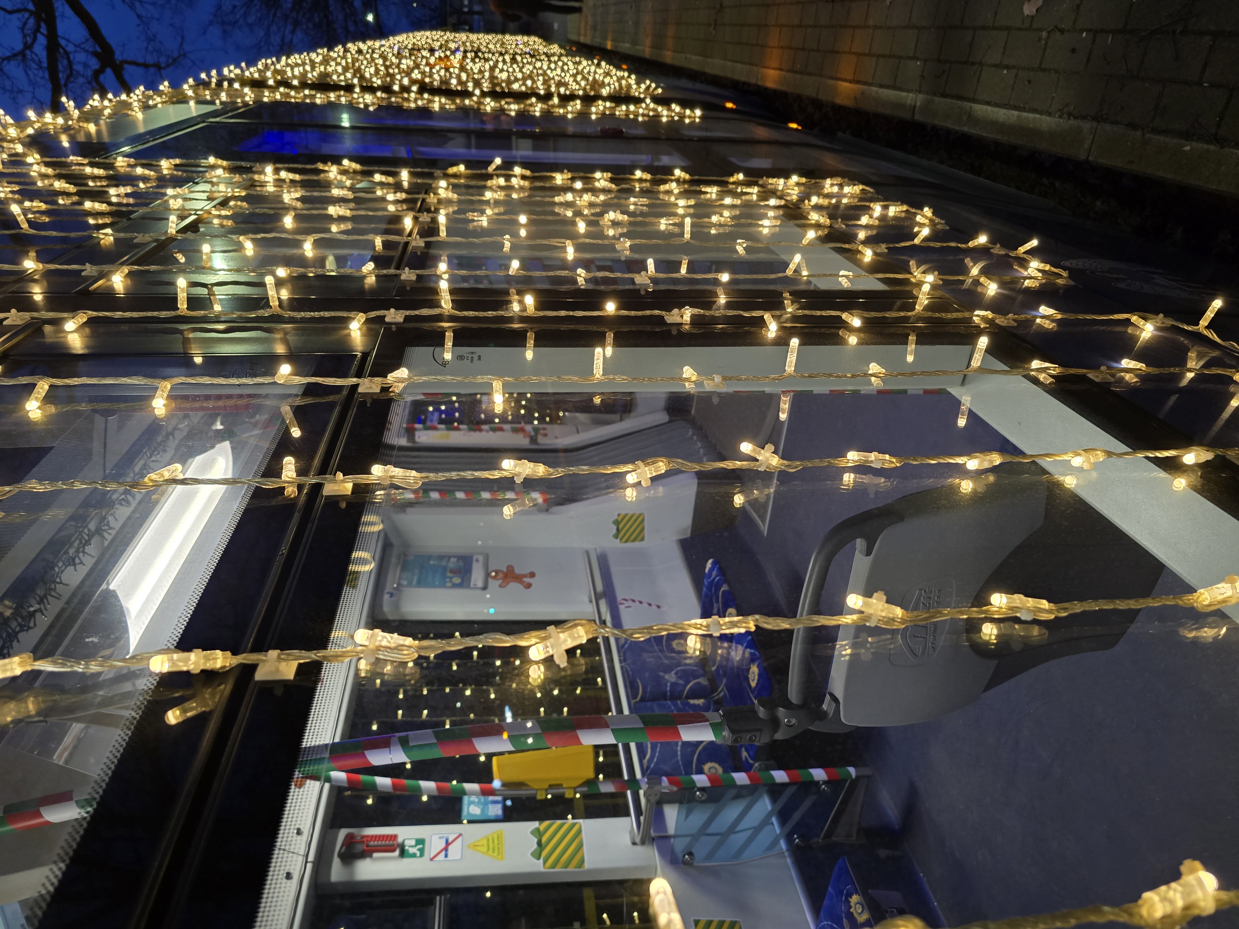 Toruński Tramwaj Świąteczny w pełnej krasie – światła, dekoracje i świąteczna atmosfera uchwycone na zdjęciach! Tramwaj jeździ po ulicach Torunia od 5 grudnia 2025 r. do 6 stycznia 2026 r. Jeśli jeszcze ktoś nie miał okazji wsiąść – zapraszamy serdecznie, zostało już tylko kilka dni!